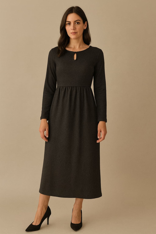 پیراهن بافت زنانه یقه قطره ای .بلند طراحی کلاسیک شیک