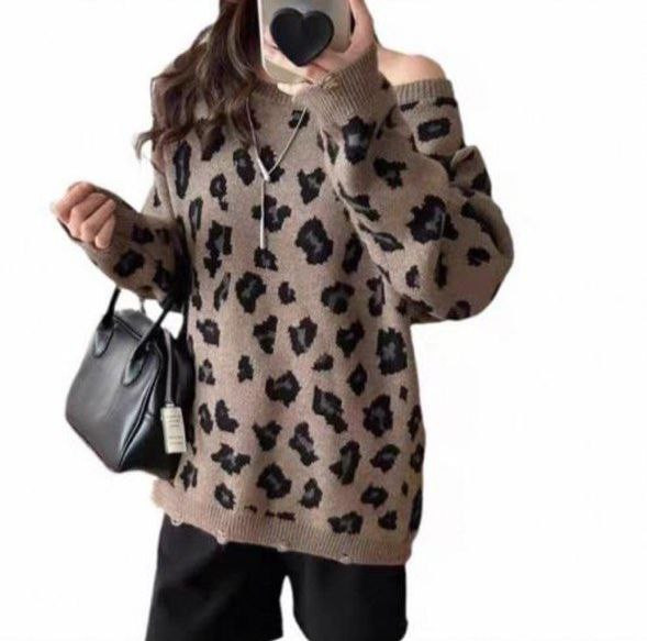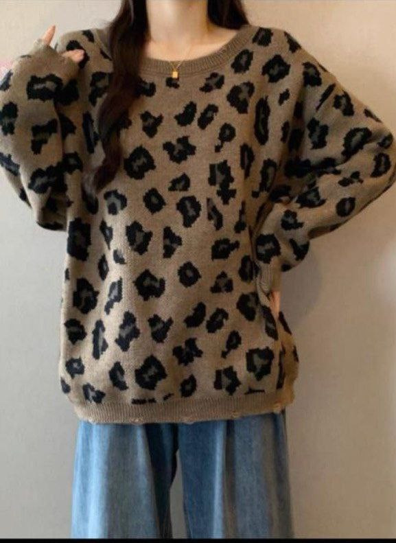 بافت یقه قایقی پلنگی زنانه مدل ازاد و راحت