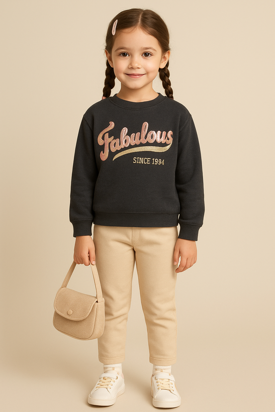 این دورس دخترانه با طراحی شاد و نوشتهی درخشان Fabulous انتخابی ایدهآل برای کوچولوی خوشاستایل شماست. رنگ مشکی شیک در ترکیب با چاپ طلایی و صورتی، ظاهری خاص و مدرن ایجاد کرده است. پارچه نرم و لطیف آن، راحتی کامل را در تمام طول روز فراهم میکند و برای فصل پاییز و زمستان بسیار مناسب است.