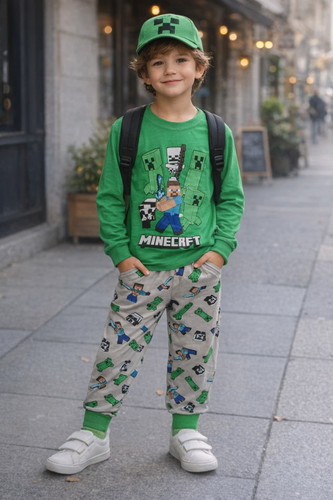 ست بلوز شلوار پسرانه نخ پنبه طرح ماین کرفت