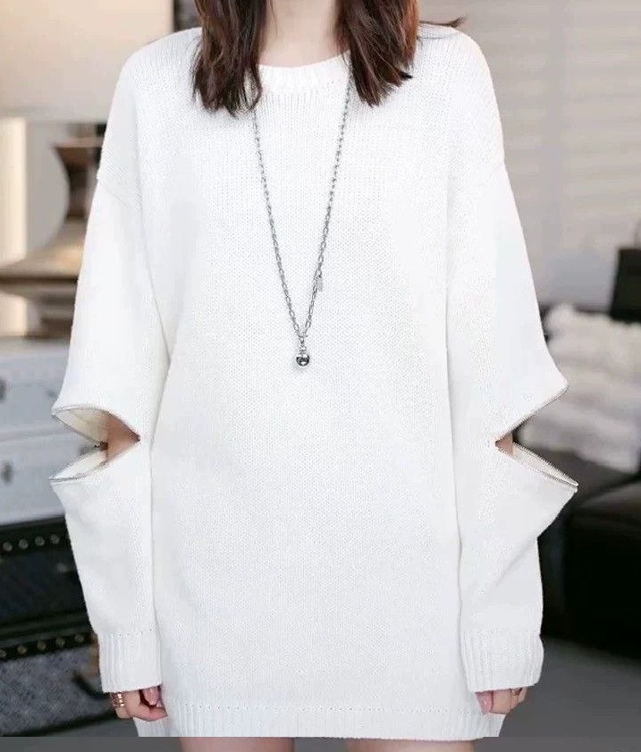 ناموجودپلیور بافت لانگ زنانه مدل اورسایز - آستین چاکدار با جزئیات زیپ شیک